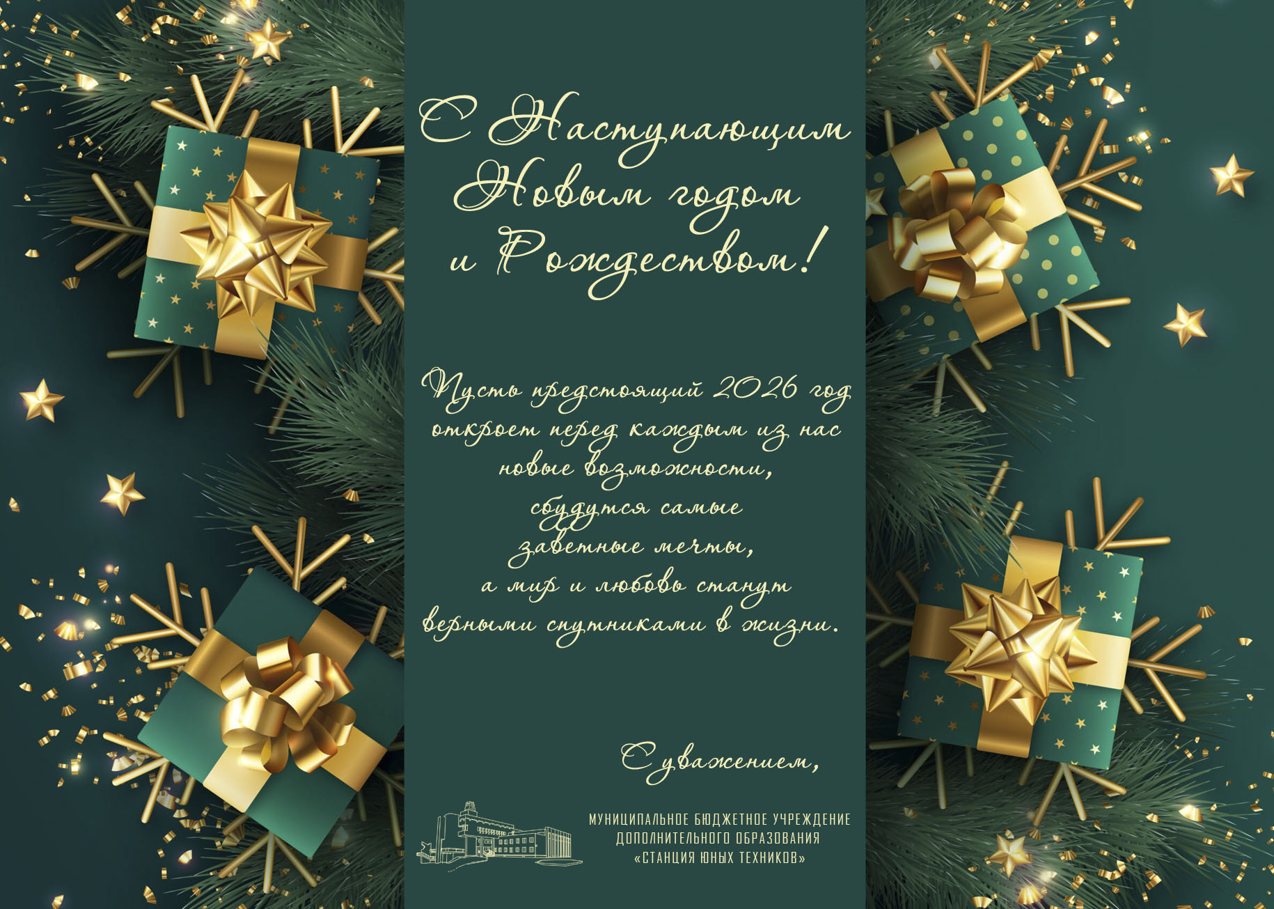 Уважаемые коллеги, родители и ученики! От всей души коллектив Станции юных техников поздравляет Вас с наступающим Новым 2026 Годом и Рождеством!